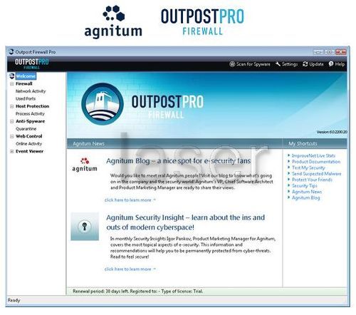 Outpost Firewall Pro provides a superior arsenal of defense against PC infiltration. Outpost ensures your online security with solid protection against all Internet-borne threats. Outpost is the first personal firewall developed with Open Architecture. It is also the first personal firewall that supports plug-ins. Sample plug-ins are included to show how this revolutionary technology can easily be employed for such tasks as Intrusion Detection, Advertisement Blocking, Content Filtering, E-mail Guard, and Privacy Control. It is equipped with every feature a personal firewall should have. It is the most functional firewall in the world. It supports all the latest security techniques and features such as: Full Stealth Mode, Anti-Leak, and MD5 Authentication.